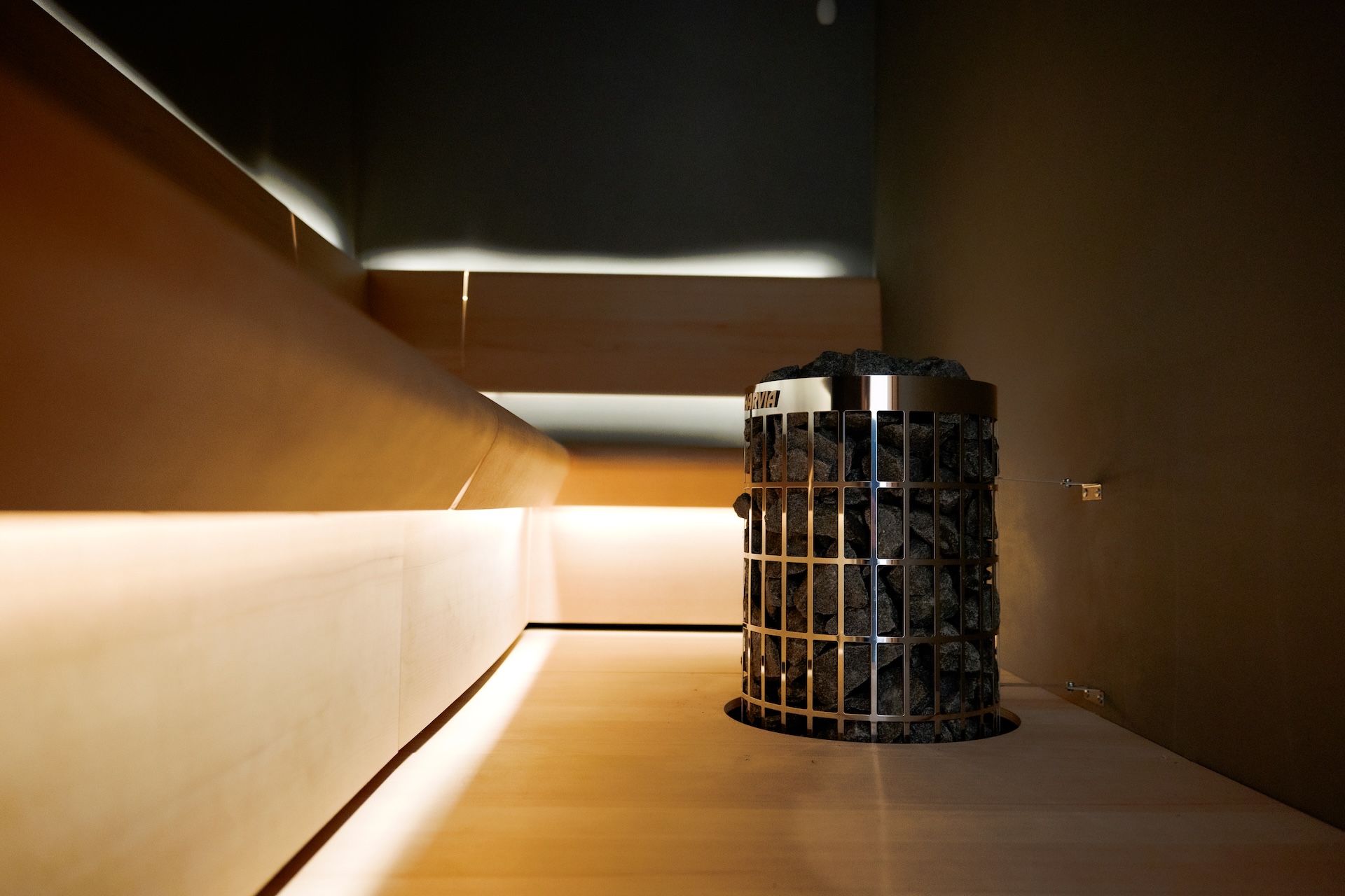 Authentic HARVIA stove delivers deep, penetrating heat with löyly (steam). Spacious enough for up to 5 people to relax comfortably — perfect for groups too.