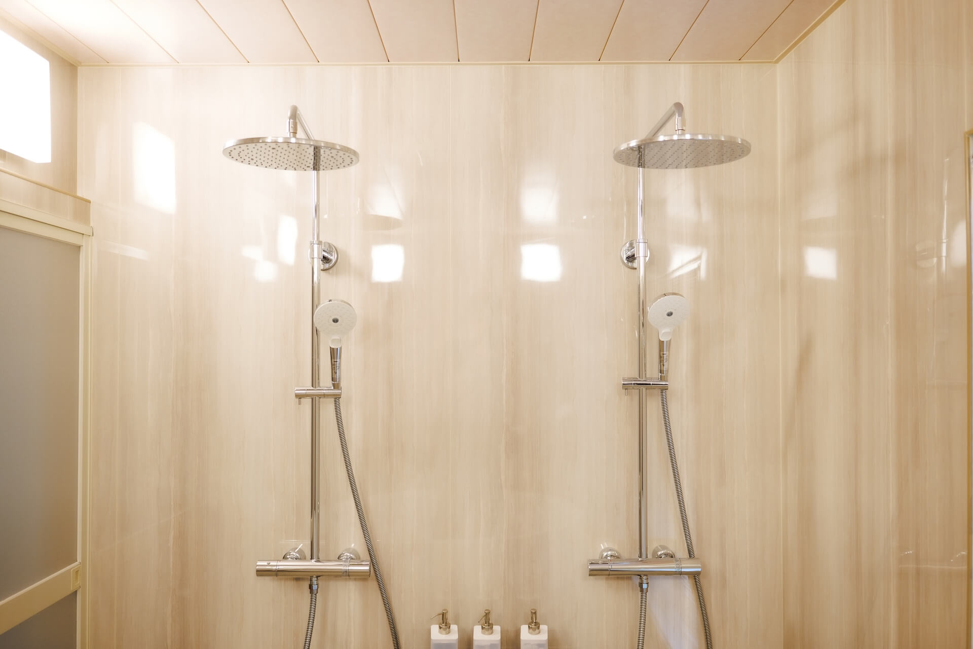 Rinse off under the powerful shower or fill the tub as a cold plunge — cool down exactly how you like.