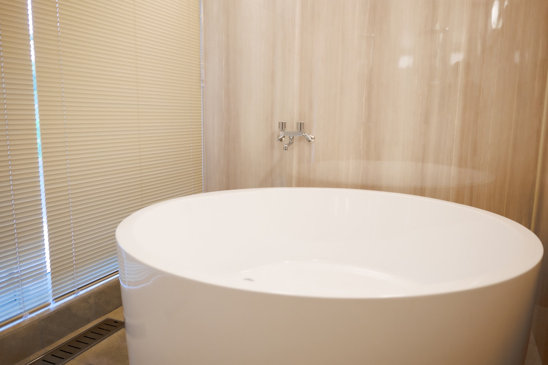 Refresh instantly under the large rain shower or fill the tub for a relaxing cold plunge.