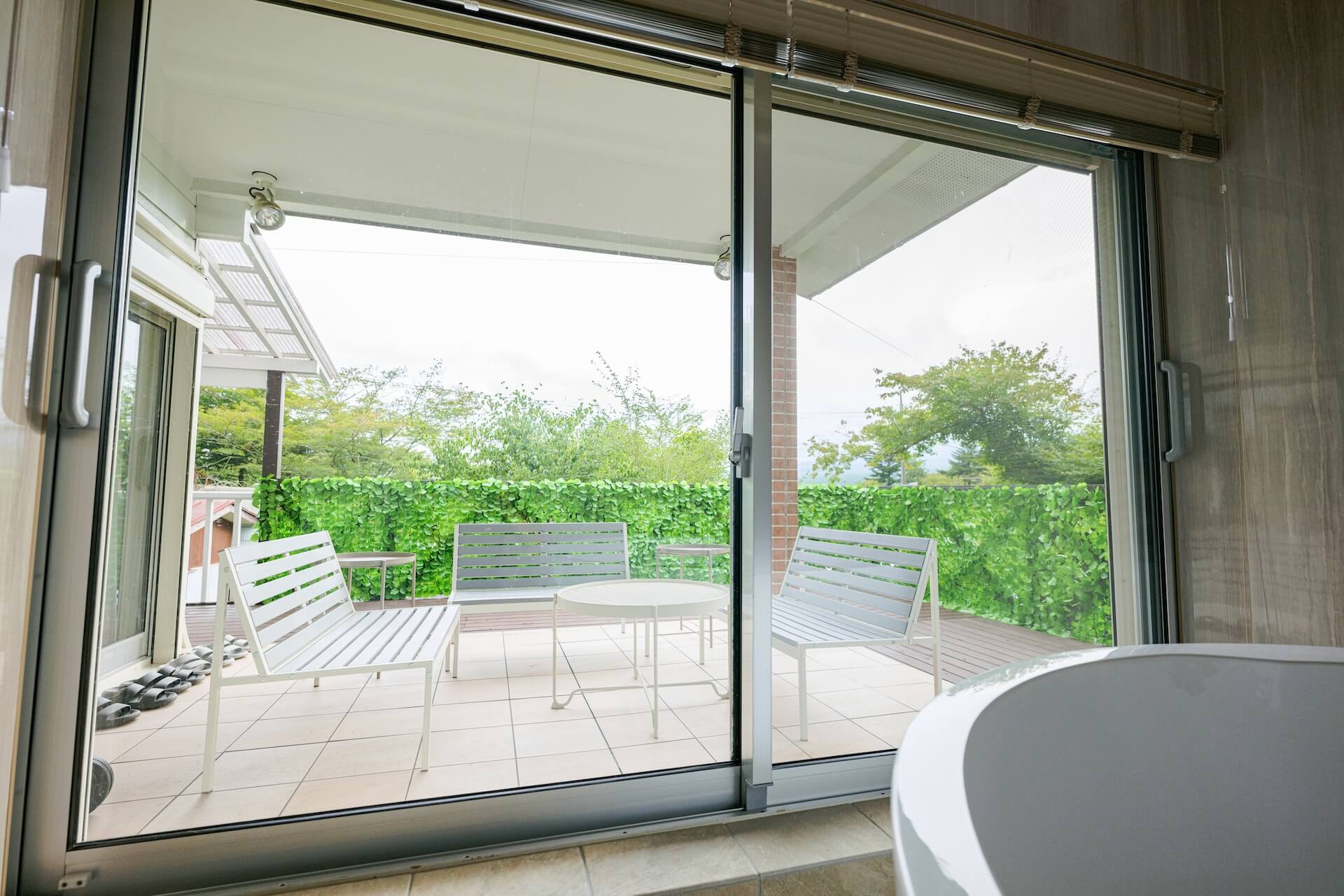 Breathe deeply on the veranda while admiring Mount Fuji.